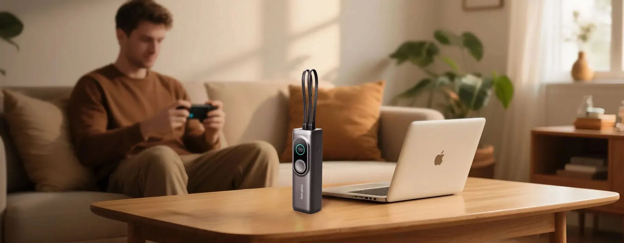 Review:"Perfect for my daily commute to the office. The integrated braided cable is brilliant—I don't have to carry extra cords around anymore, and it acts as a sturdy carrying strap. It's compact enough to hold in one hand while charging my phone."
